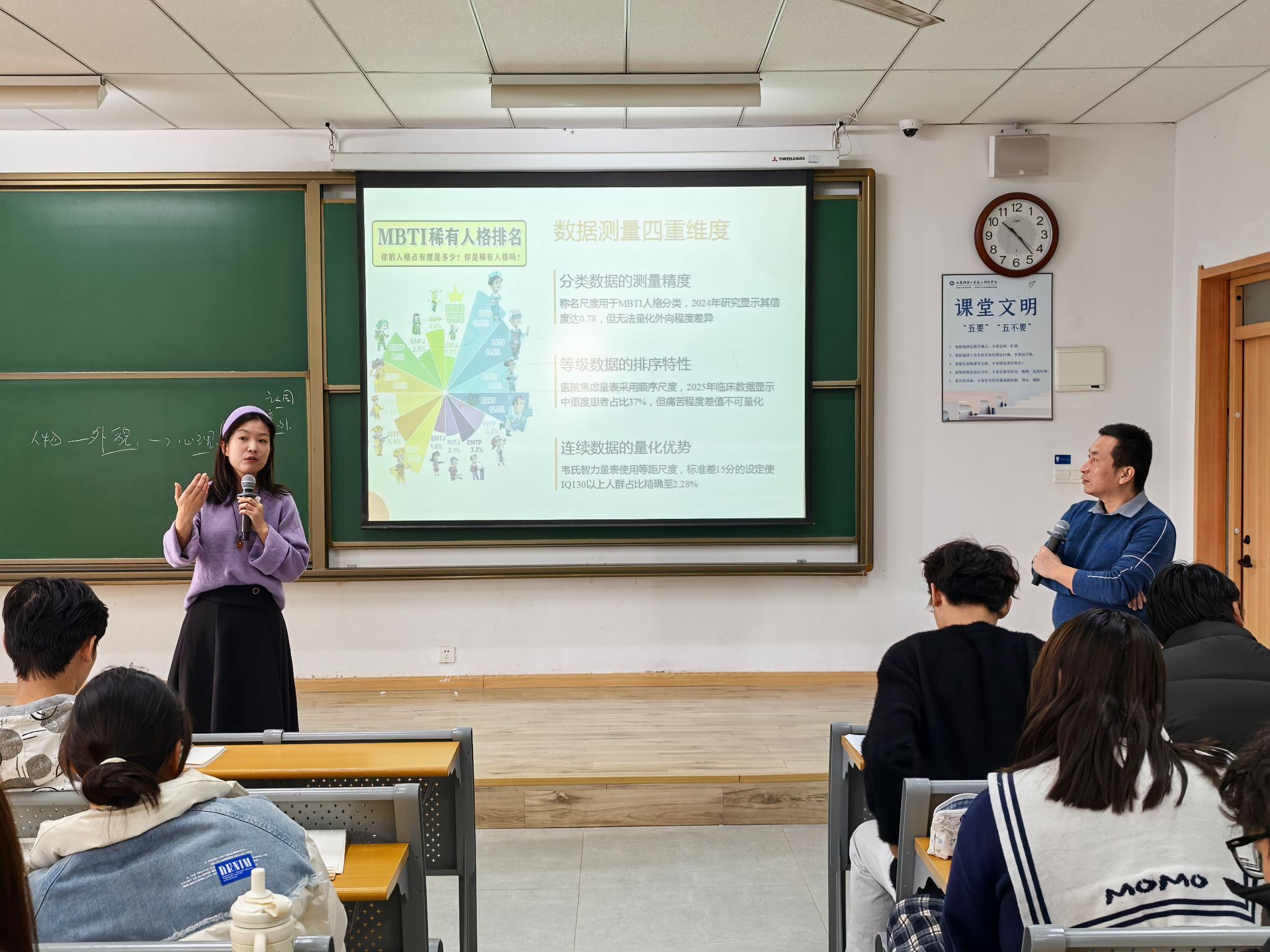 她举例说明了现代心理学已经和AI深度结合。武汉大学开发的APP能通过儿童面部表情早期识别自闭症;MBTI人格测试通过称名、顺序、等距三种尺度分析性格倾向。“就连星座为什么‘准’,也是统计与归纳的结果。”