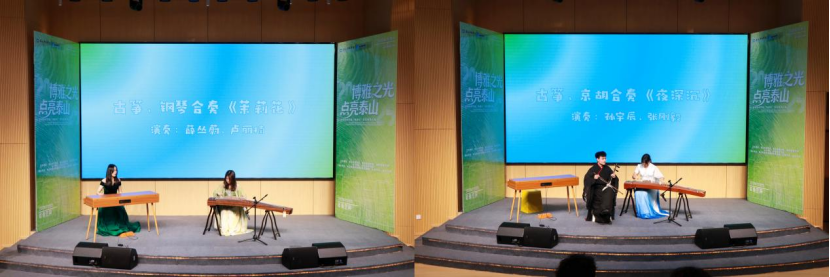 “民族音乐是美育的重要源泉,更是文化传承的纽带。”蔡涵臣在自述中分享的感悟,恰是第二幕“东方的旋律”的核心表达。薛丛蔚的古筝与卢丽楠的钢琴合奏《茉莉花》,将传统民乐的清新婉转与西洋乐器的厚重饱满相融合,让这首经典民歌呈现出跨时空的艺术张力;孙宇辰的古筝与张刚毅的京胡合奏《夜深沉》则尽显东方韵律的深邃韵味,两种传统乐器的默契配合,既展现了学生对民族音乐的深刻理解,更传递出中华优秀传统文化的独特魅力,实现了美育与文化认同的同频共振。